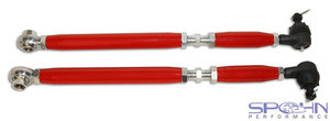Lock in your toe settings, minimize wheel hop and increase traction with a set of our adjustable tubular rear toe rods for the 2004-2006 Pontiac GTO. Our adjustable tubular rear toe rods are much stronger than the factory's skimpy toe rods that are well known to bend, they'll hold up to anything you throw at them! Our adjustable tubular rear toe rods are constructed from 1.25" x .095" wall 4130N chrome moly tubing to eliminate flex and are 100% TIG welded to provide for maximum strength and durability. The right hand and left hand threaded CNC machined 4140 chrome moly double male stud adjuster allows for easy on-the-car adjustments. They're equipped with high strength, 3/4" chrome moly spherical rod ends with Teflon® self lubricating race on one end and premium tie rod ends with grease fittings on the other end. They are a 100% bolt-in installation, no drilling is required. They're available powder coated in your choice of the above colors for a brilliant and durable finish. When ordering in the notes please indicate BLACK or RED